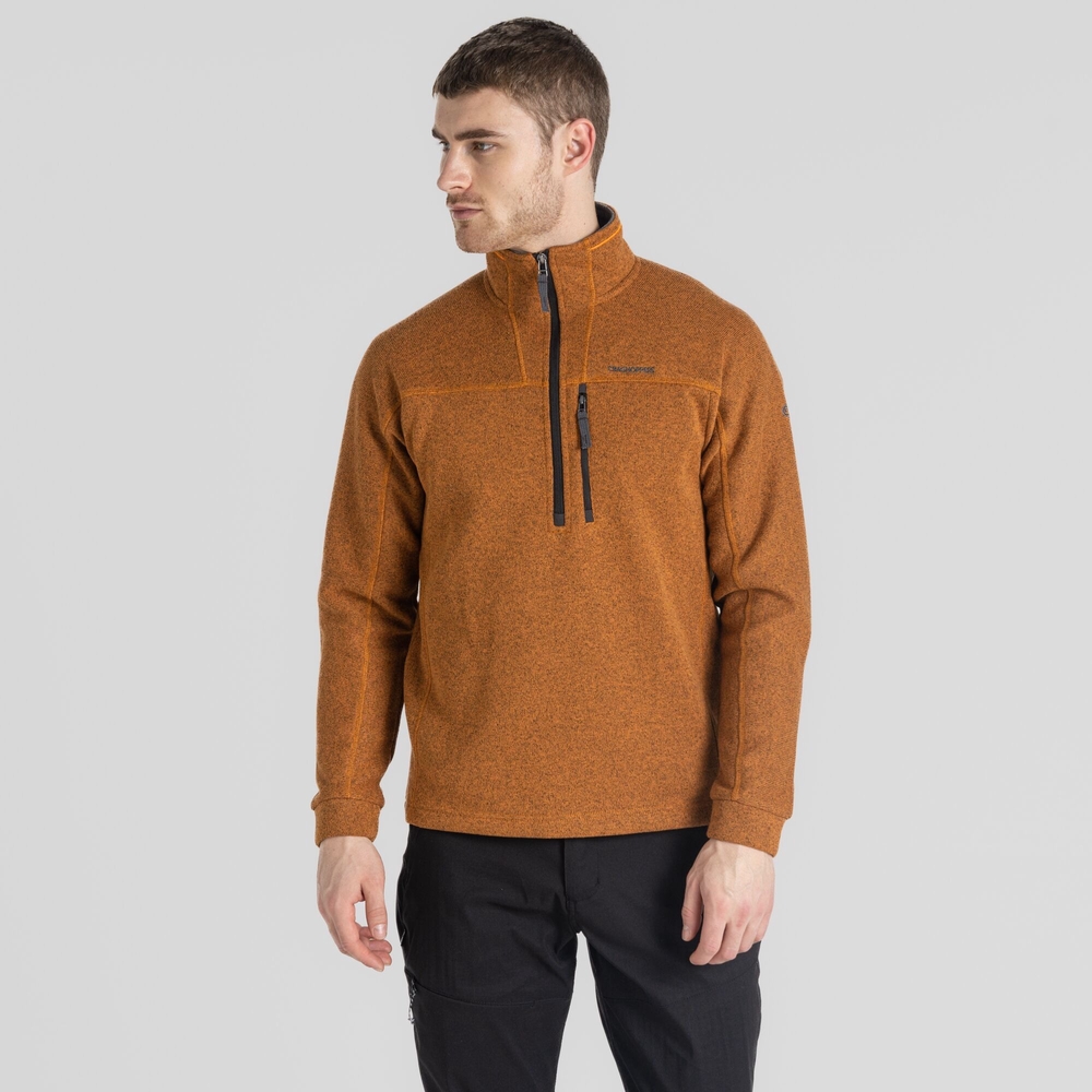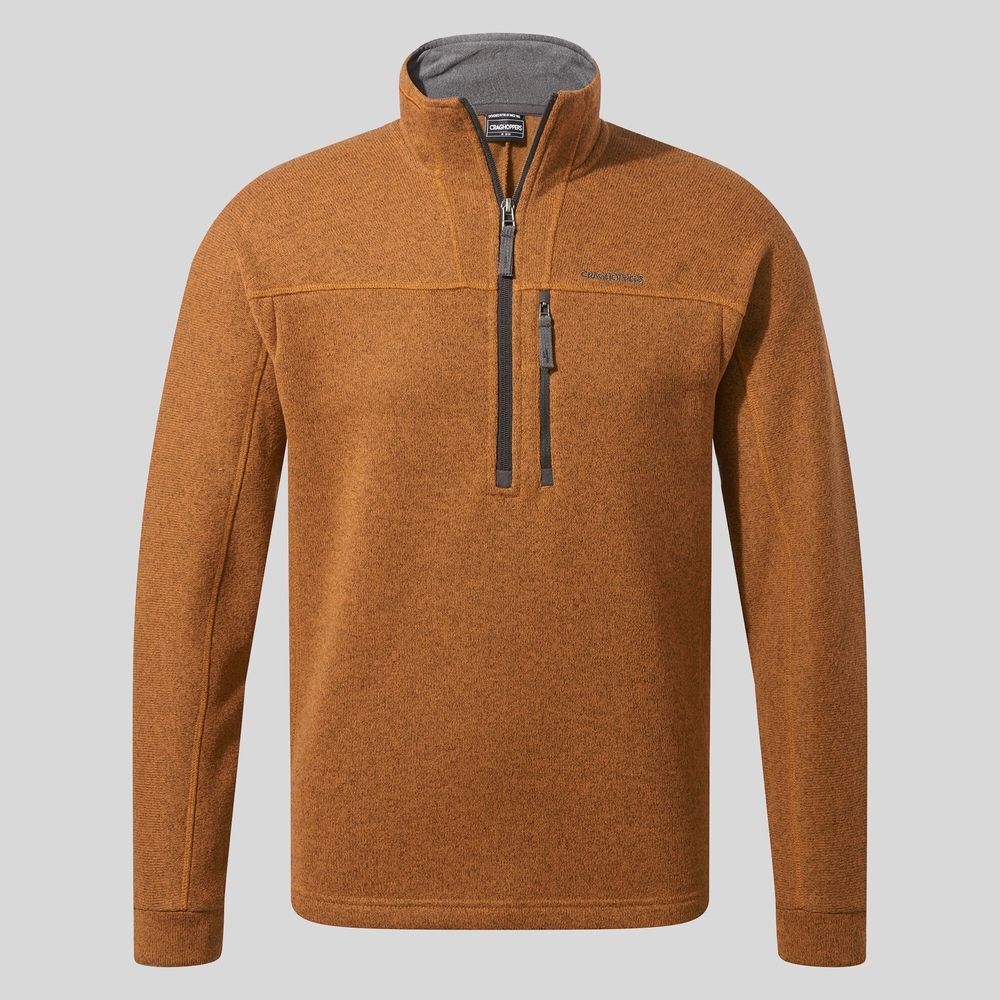 Easy-care insulating top made from part-recycled marled knit-look microfleece fabric. Contrast half-zip fastening plus a useful zipped chest pocket and microfleece inner collar.